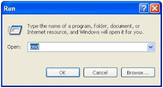Selanjutnya ketik cmd kemudian Klik tombol OK.